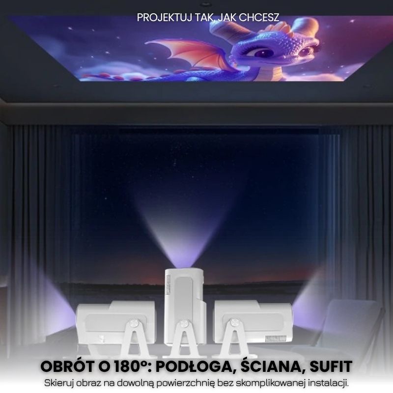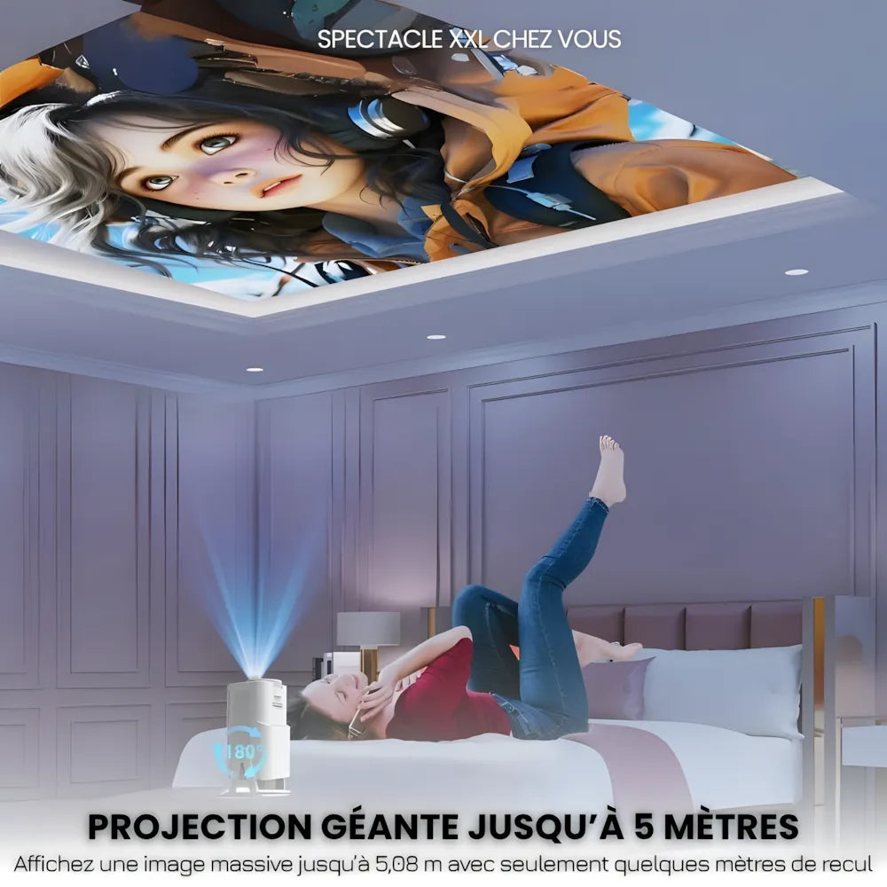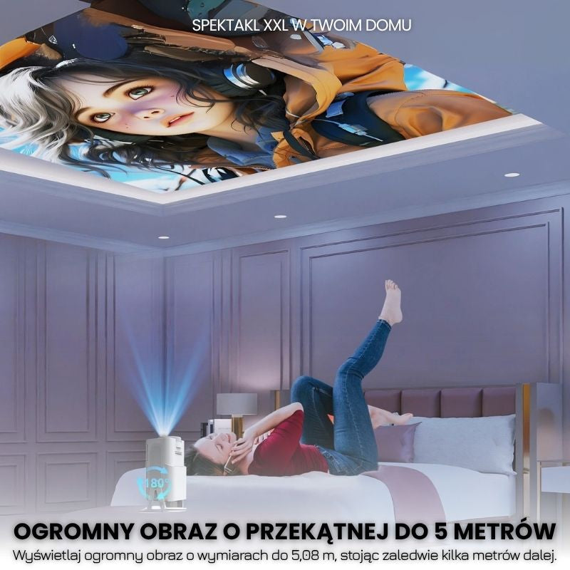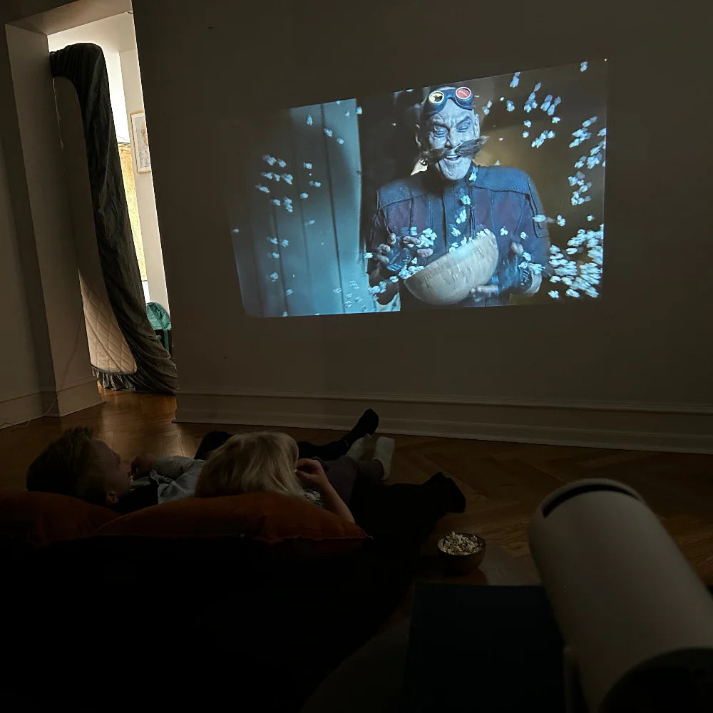 Verwandeln Sie Wände, Decken oder jede beliebige Ecke mit unvergleichlicher Leichtigkeit in eine Leinwand für Filmabende, Open-Air-Vorführungen oder Präsentationen.